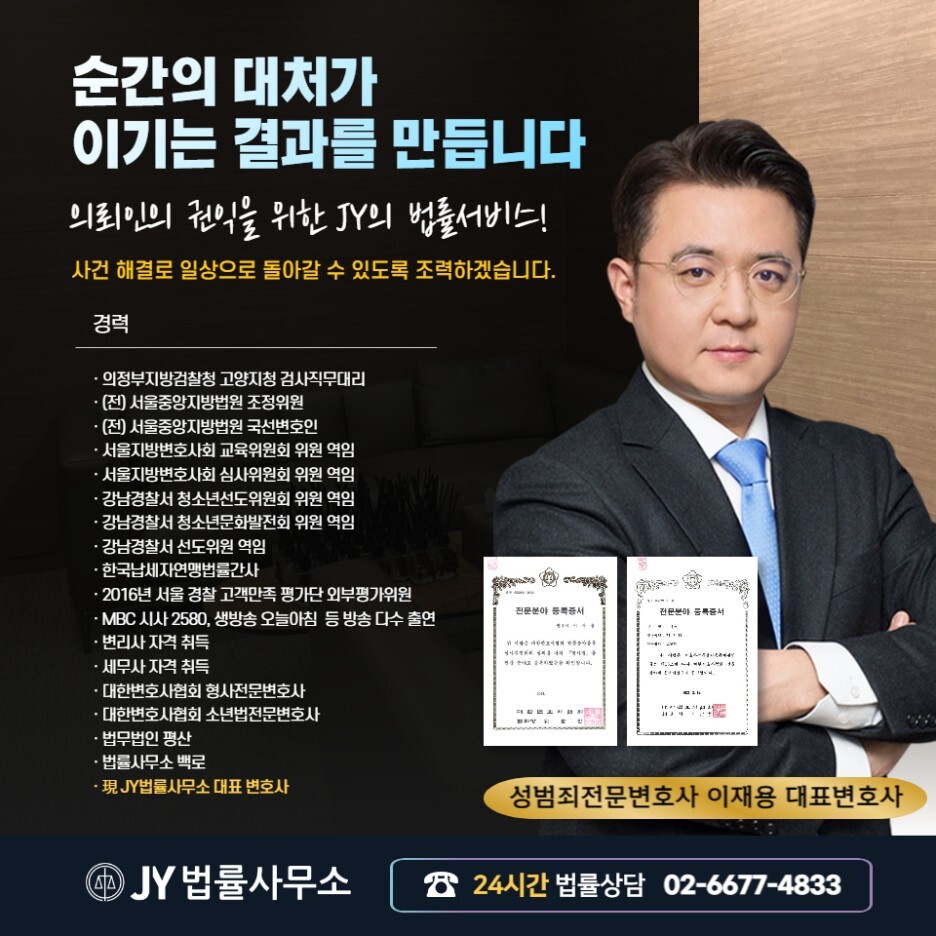 위와 같은 상황을 미연에 방지하기 위해서라도 사안에 연루되었다면 초기부터 형사전문변호사의 조력을 받아보시길 바랍니다.