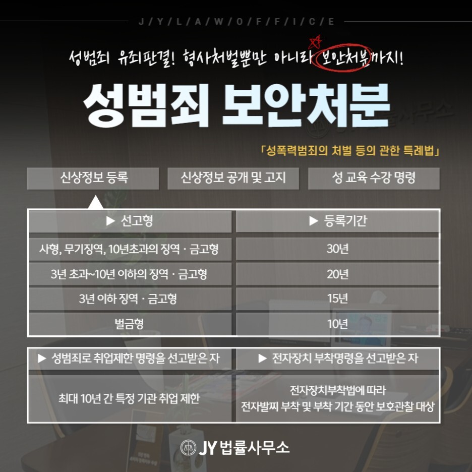 성범죄 보안처분이 명령되게 된다면 본인의 신상 정보를 외부에 공개하거나 취업 제한, 전자발찌 착용 등의 문제를 직면하게 될 수 있습니다.