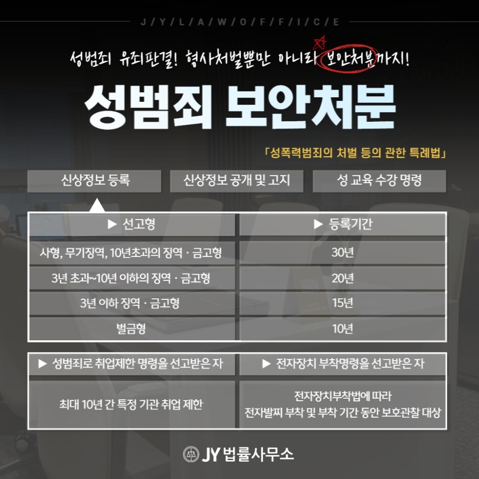 아청법 위반 사건은 엄연히 성범죄로 분류되기 때문에, 사안에 따라서는 성범죄 보안처분까지 명령될 수 있습니다.