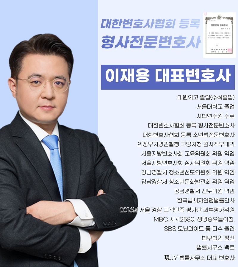 지금 바로 24시간 법률 상담이 가능한 JY 법률사무소에 연락하시기 바랍니다. 선임을 하지 않는다고 하더라도 단순히 상담받는 것만으로도 사건의 결과는 달라질 수 있습니다.