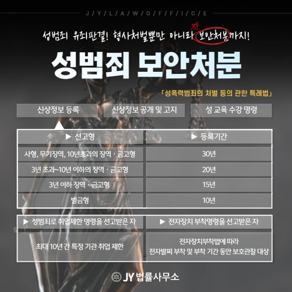 성범죄 가해자 신분으로 벌금형 이상의 처벌을 받게 된다면 보안처분을 명령받을 수 있습니다.