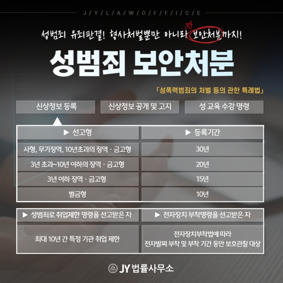 관련 사건에 연루되었을 때는 무거운 처벌 뿐만 아니라 성범죄 보안처분을 명령받을 수 있습니다.