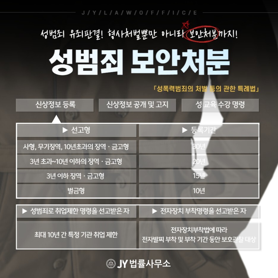 이는 형벌 외에 받는 사회적 처분으로 신상정보 공개와 고지, 취업제한, 보호관찰, DNA 채취 등 상당한 불이익을 받는 것을 말하는데요.