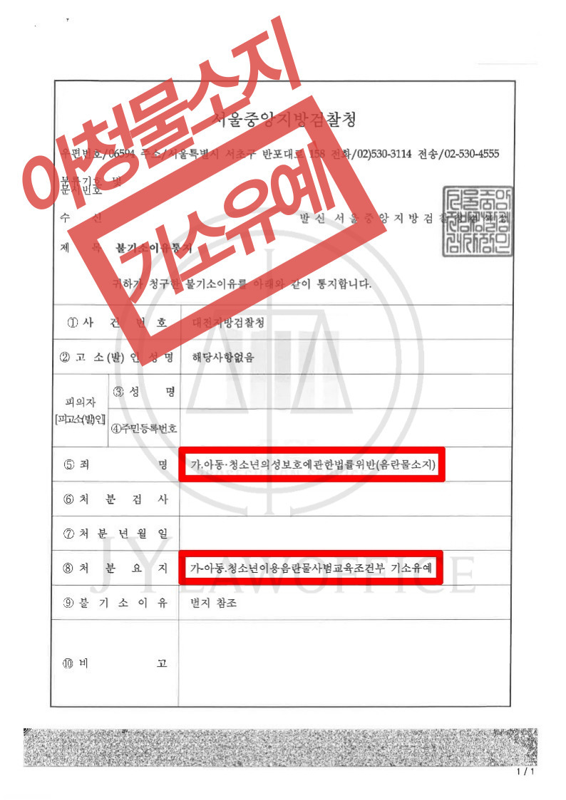 A 씨는 변호사의 조력을 통해 자신의 억울한 상황을 일관되게 진술하였고 특히 아동·청소년 관련 영상을 소지할 의도가 전혀 없었음을 강력하게 주장하였습니다. 변호사 역시 A 씨가 아동·청소년 이용음란물을 검색해서 찾았다는 증거를 확보할 수 없다는 점, 해당 영상을 곧바로 삭제하여 재유포될 가능성을 스스로 차단했다는 점을 들어 무혐의를 주장하였습니다.