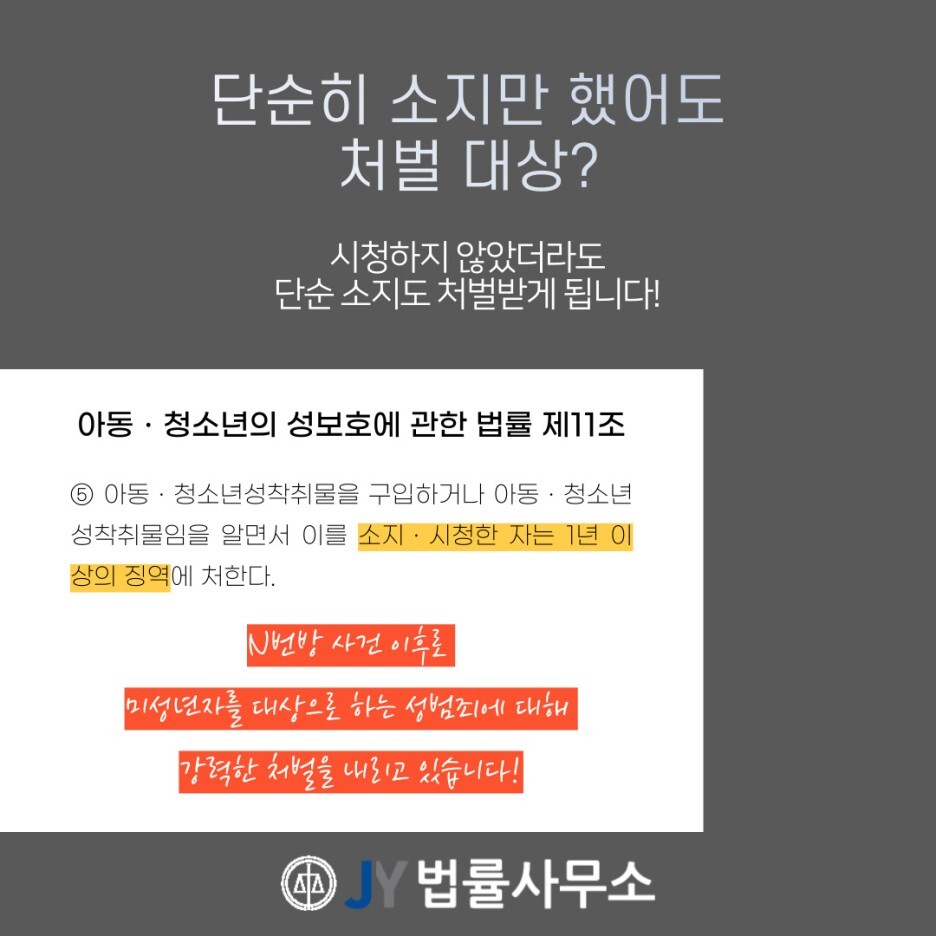 N번방처벌 아청물 소지 혐의를 받고 있다면 본문