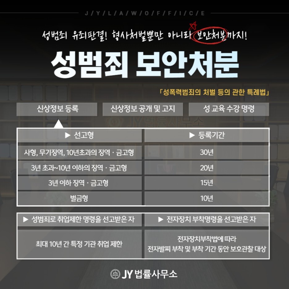 그래서 성범죄 사건 유죄로 판단된 후 전자발찌 착용이나 신상정보공개, 취업 제한 등을 당하는 경우가 많은데요.