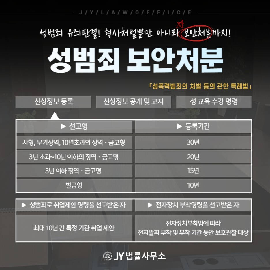 보호관찰이나 취업제한, DNA 채취나 전자발찌를 부착하게 되는 등 다각 면에서 제한이 있을 수 있습니다.
